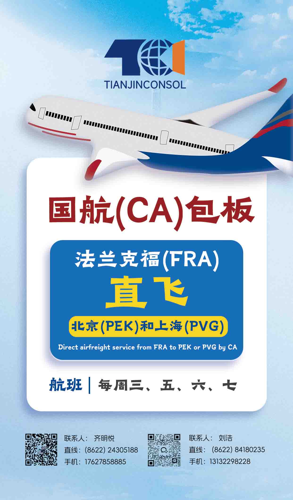 法兰克福直飞北京/上海 国航包板 高效直达
